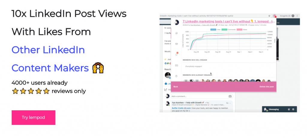 Lempod helps you grow your LinkedIn post views and interactions from real people at $5/month.