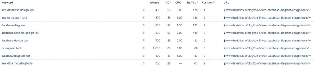 - The content: We combined our personal experience and content pieces from software review sites. We also put dbdiagram.io at the top of the article and focused on the benefits of the tools.