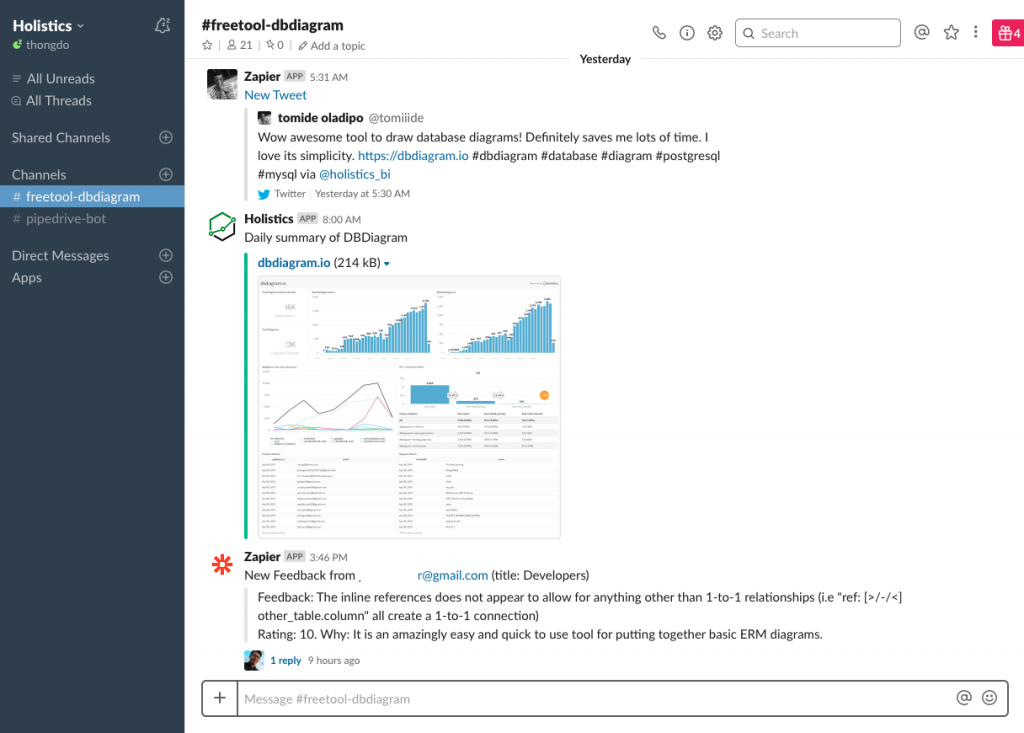 Later on, to get deeper analysis and constant visibility on how people are using our own product, Holistics.io, to send reports to our Slack channel daily. Information that we normally look at includes: