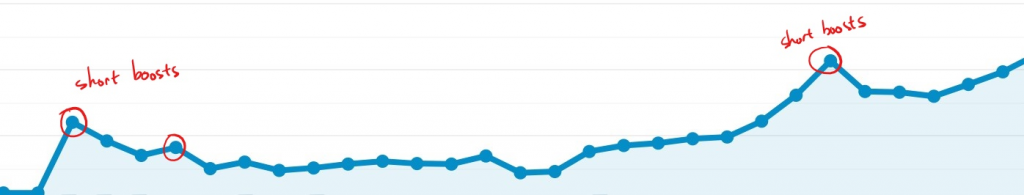 These channels often brought us a huge boost in visitors and new users in a very short time. However, after a few days, the number often drops to only 20% of the original boost, and slowly phased off after that.