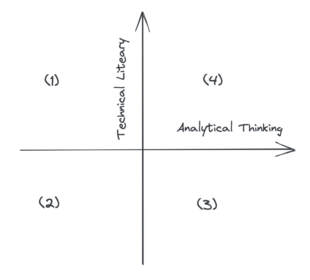 Using the above example of "Let's x2 revenue," analytical thinking means being able to validate the question, identify factors and sub-factors that impact the question, break them down into quantifiable metrics, and form actionable hypotheses and strategies.