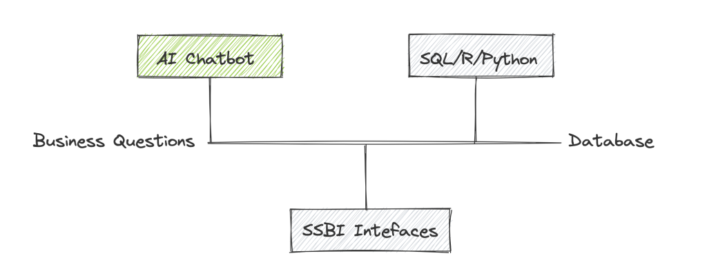With the advent and rapid development of LLM and ChatGPT recently, it is now more possible to translate business questions directly into data queries, and close the the gap entirely.